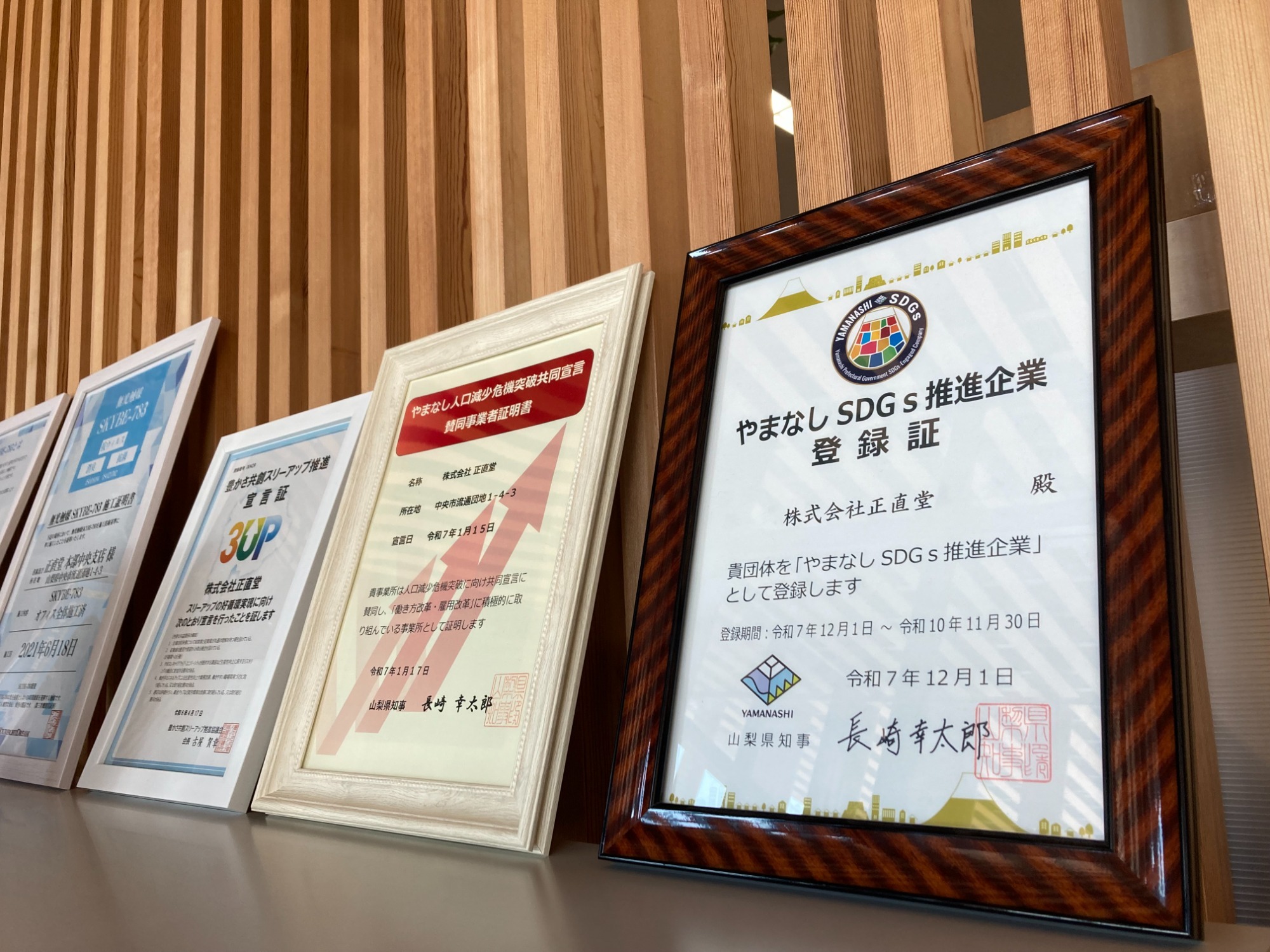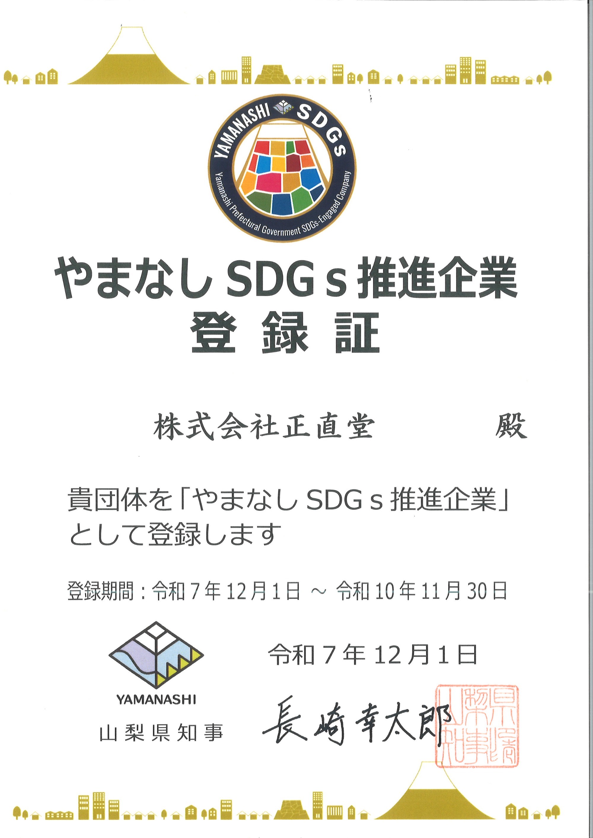 このたび、当社は「やまなしSDGs推進企業(第一認定)」の登録更新を行いました。